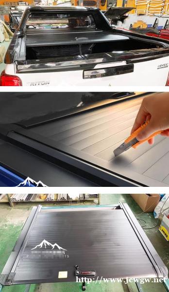 三菱l200皮卡车手动卷帘推拉盖子改装件,加厚铝合金材质,重量轻,耐磨耐腐蚀,承重力强。升级款滑轨,宽边覆盖设计,安装稳固不移动。带锁防盗,内置LED灯设计。