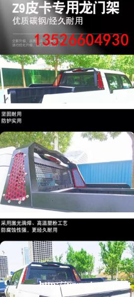 东风锐骐Z9新能源皮卡车后斗龙门架防滚架防翻架,碳钢材质,加厚板材,坚固耐用。采用激光满焊,高温喷粉工艺,防腐蚀性强。增强车身立体感,美观实用,提升档次。需要打孔安装。